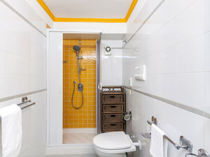 As you ascend to the top of Villarena Relais and walk to "Il Gallo Lungo", you immediately notice the cool breeze that both the Mediterranean Sea and trees of the courtyard offer you. "Il Gallo Lungo" is an exclusive two-bedroom condominium that ensures privacy for you and your loved ones. The first twin room is comfortably furnished with two single beds, nightstands, wardrobe and TV.